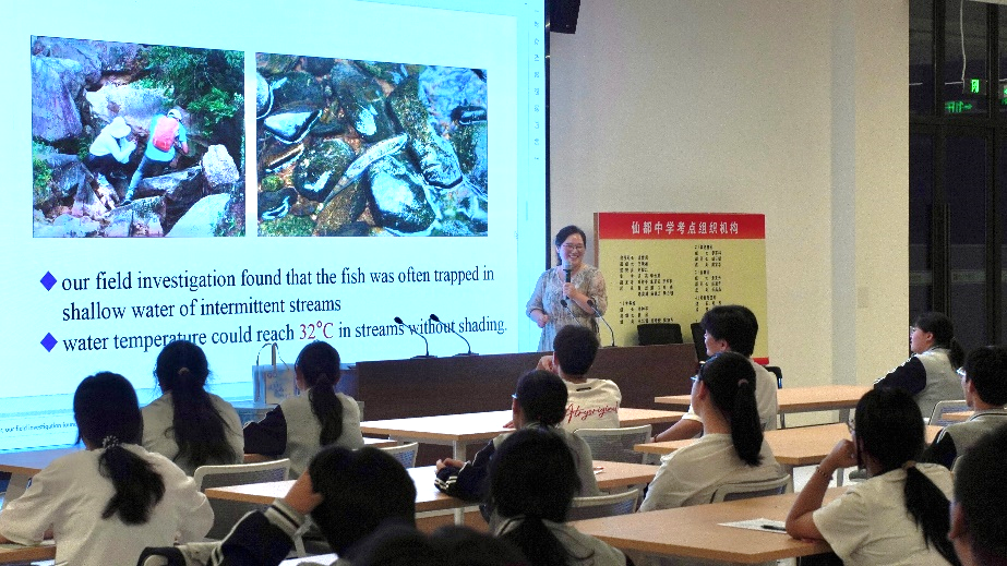 走进缙云仙都中学,为200多位高三学子送上一场海洋科普公益讲座。赵波副教授以中英双语模式作了题为《小鱼缸里的行为学大数据》分享,旨在用好奇叩开海洋生态领域知识的大门。