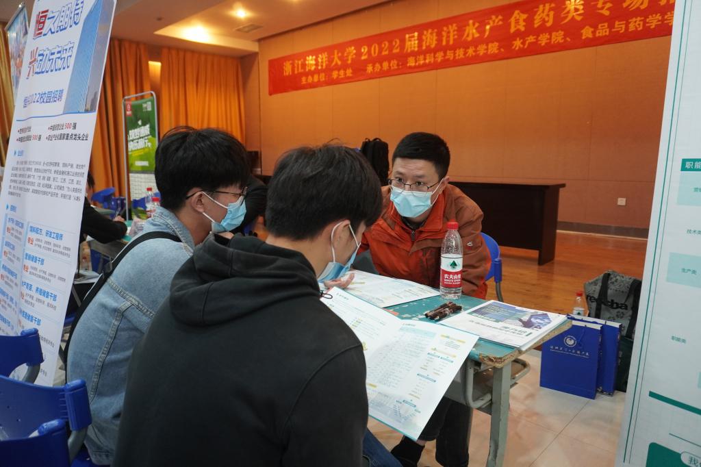、海科学院和食药学院共同承办的海洋水产食药类专场招聘会在杨存国二号报告厅顺利举行。