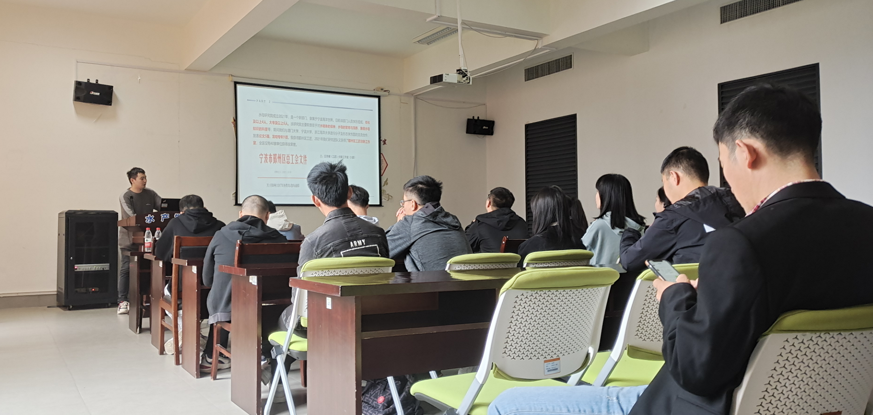 宁波神凤海洋世界有限公司负责人主要介绍了公司概括、行业前景、人才需求、薪资待遇等内容,并就同学们关心关注的问题进行了交流互动。
