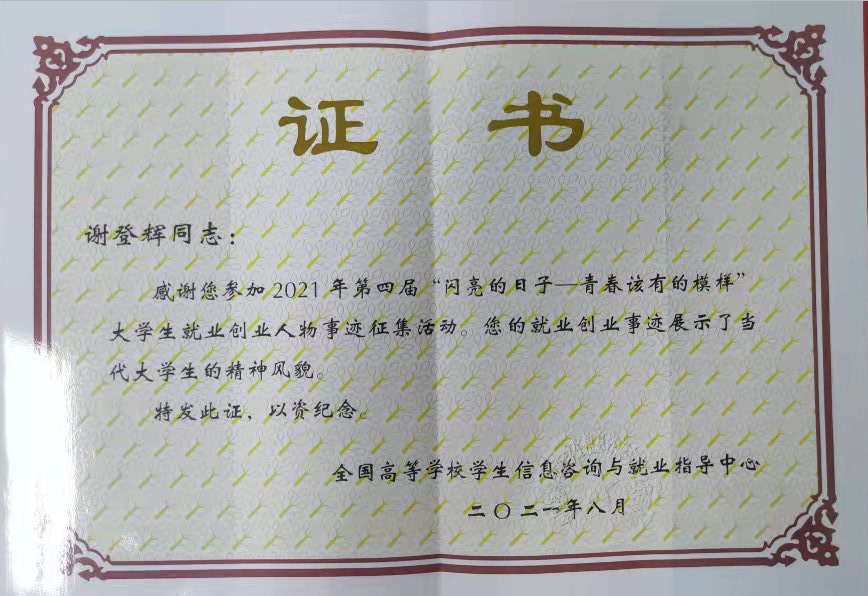 谢登辉同学来自于湖南湘潭,服役于首都北京,求学于东海之滨,服务于家乡故园,现为湖南省湘潭县一名普通的基层公务员。从绿色军营,到蓝色校园,再到红色故乡,一路风雨,一路兼程,不变的是其对奋斗的坚守和秉持,用自己的行动诠释了“奋斗是青春最亮丽的底色”。