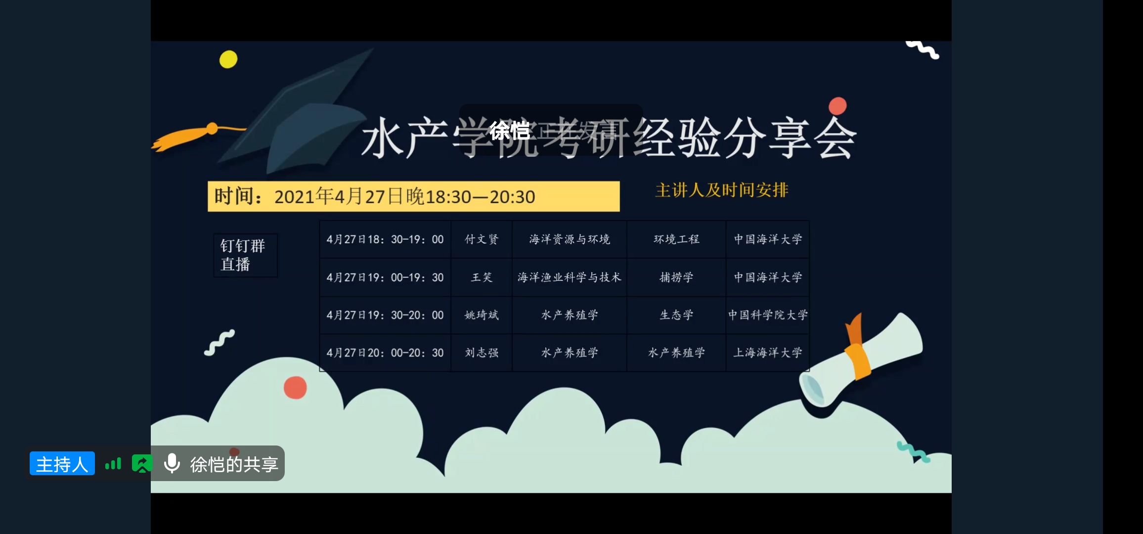 通过网络形式举行考研经验分享会。此次分享会邀请了四位已经考上研究生的同学进行了分享和交流。
