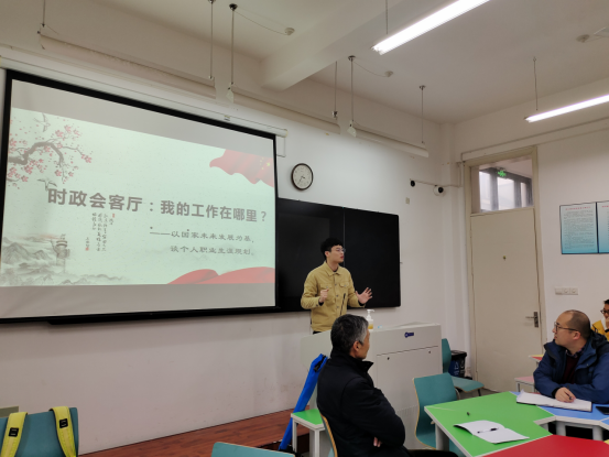活动伊始,蒋晨阳同学对过去一周的全国两会作了简单的背景介绍,引出活动主题,引发同学们的思考。卢秦兴、杨洋、谷芝杰等同学也踊跃分享了自己的观点。