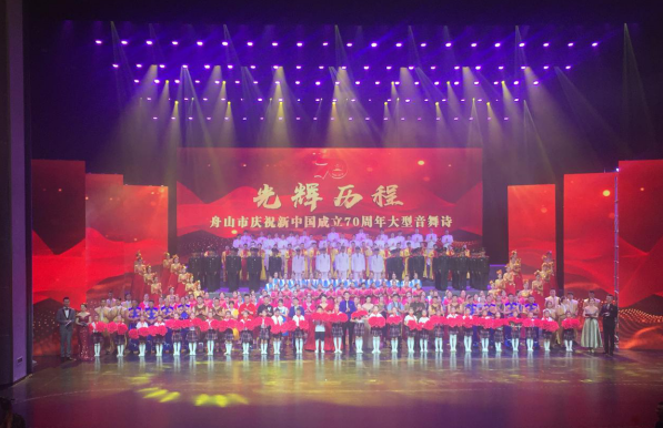 据悉,《光辉历程》大型音舞剧是舟山市为庆祝新中国成立70周年而举办的。本剧共分为四大篇章,由《山海追忆·潮涌》,到《山河多娇·开放》,再到《山海增辉·奋进》和《山海筑梦·初心》。每一篇章,通过合唱、舞蹈和情景剧等呈现形式,表达了新中国70年来的光辉历程。