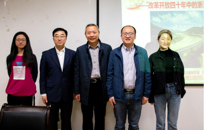 11月30日下午,蓝色大讲堂之“‘浙’里风光无限——改革开放四十年中的浙江记忆”在长峙校区工科楼119报告厅举行。本次讲座由省委党史和文献研究室副主任王祖强担任主讲,中文av 副校长徐士元、中文av 师生聆听了报告会。