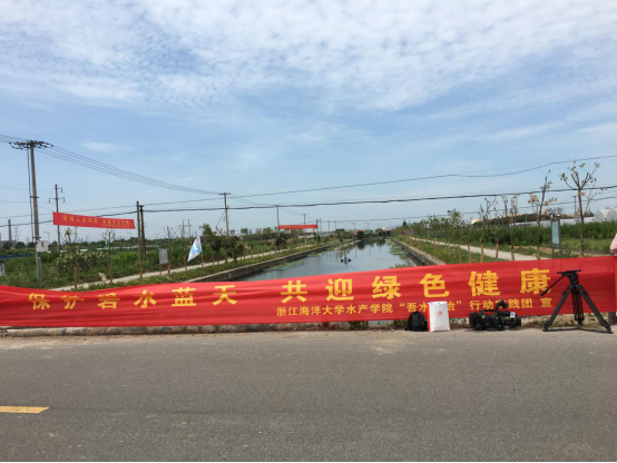 团队悬挂的护水宣传横幅
