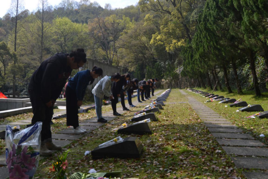 大家怀着悲痛而沉重的心情来到海山公园烈士陵园,缅怀为了祖国的解放和人民的安宁而英勇牺牲的战士,瞻仰他们的丰功伟绩。大家在墓前排好队伍,认真地聆听主持人致词。全体成员怀着崇敬的心,衷心地感谢革命先烈,在墓前默哀一分钟,并全体三鞠躬。哀悼完毕后,许书记上前讲话,他教导大家要饮水思源,时刻不忘是在此长眠的烈士带给了我们这一代的和平与安宁,作为当代大学生要树立正确的三观,为社会国家做出自己的贡献来回报他们。紧接着先进团支部代表朱明星,优秀团员代表王钻一、入党积极分子代表郑瑶和童森炜依次发言,他们在烈士纪念碑下向所有人介绍了在此长眠的烈士当初的艰苦与崇高品德,讲述了他们为后世做出的贡献,表明了自己向他们学习,努力为国家社会做出贡献的决心。作为跨世纪的新一代,应继承革命先烈的遗志,做一个积极向上、热爱祖国的好少年,用一颗感恩之心来面对这个美好的世界。