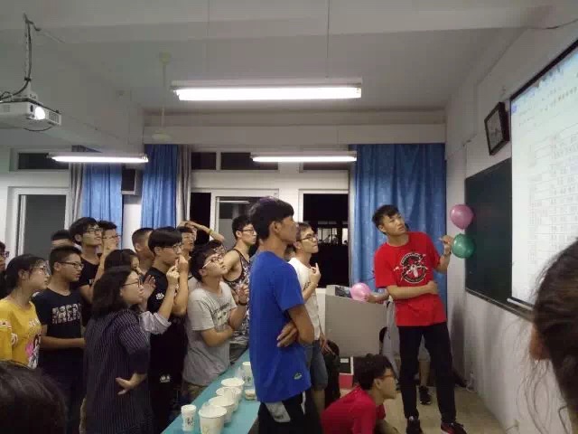 晚上六点团学各部长陆续到达教室,虽然教室只是用气球简单装饰过,但是却简单不失温馨。游戏的奖品与道具已经准备好,各个部门的工作人员将教室的桌椅空出,以腾出活动场地。到了6:30,同学们陆续进入教室,活动开始。在活动现场,同学们刚开始略显拘束,但是在游戏的作用下,同学们玩的越来越开心,也越来越放的开,同学们齐心协力传递吸管,在围圈游戏中,虽然游戏到最后变的十分吃力,大家脸上也挂满了快要体力不支的尽力坚持的表情,每个组都在为冲击最高分用尽自己的最后一分力气。欢声笑语充满了每一间教室。晚上8点,各班相继做完了游戏,开始介绍团学的各部门,学长巧妙的将各部门的特点与游戏结合起来,使同学们影响深刻,为后续的招新工作做好了铺垫。