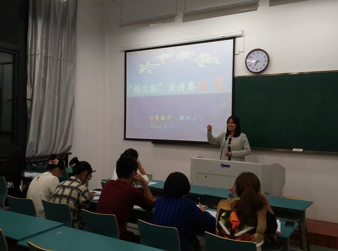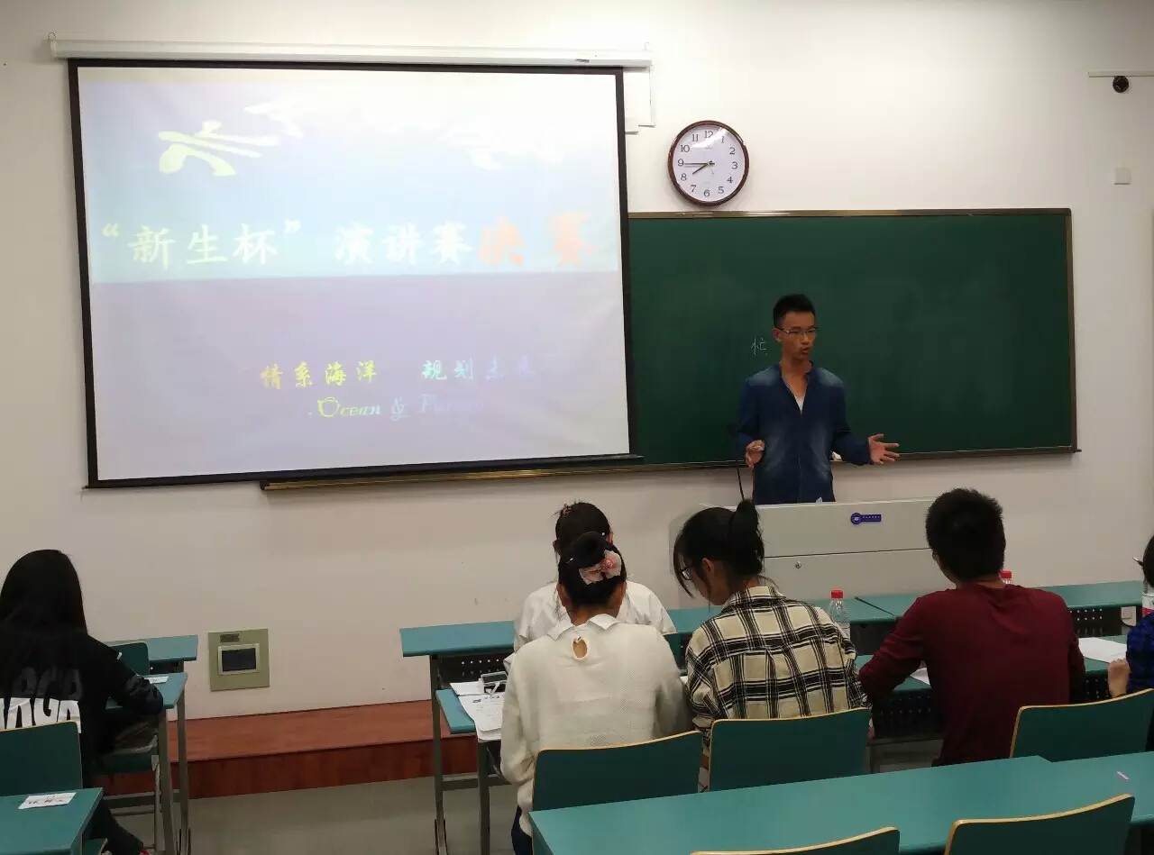 在公共教学楼215教室举行了一场别开生面的演讲赛决赛,决赛延续了预赛“情系海洋,拥抱未来”这一主题。辅导员金枫老师、学生会全体成员及部分大一新生出席了本次比赛。