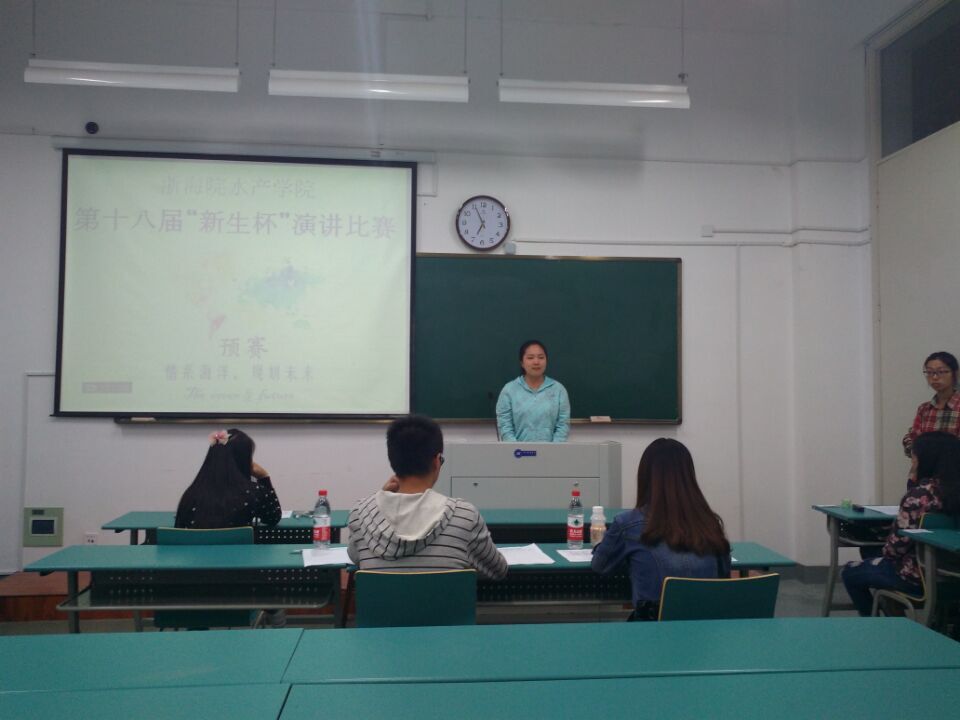 在公共教学楼109和110教室举行,演讲围绕“情系海洋,拥抱未来”这一主题展开。辅导员金枫老师、学生会部分部长和部分大一新生出席了本次比赛。