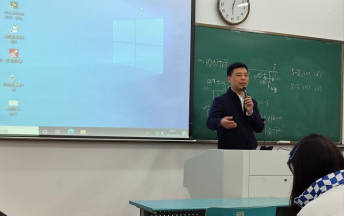 在教学楼203教室举行海洋资环与环境专业考研经验分享会,分享会由学院党委书记虞浩臣主持。