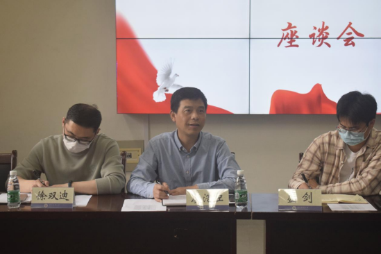 在海科楼263会议室召开2023届毕业生代表座谈会。本次座谈会由学院党委书记虞浩臣主持,2023届毕业生代表参加会议。