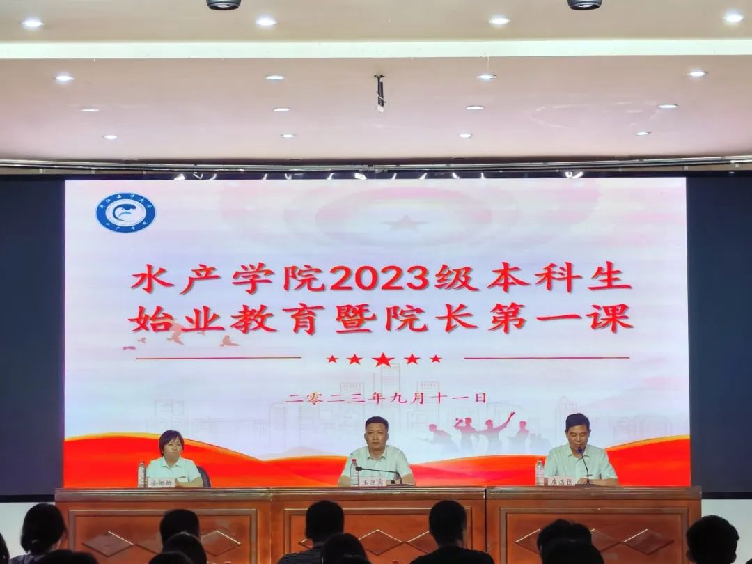 2023级本科生新生始业教育暨院长第一课在定海校区学生活动中心二楼报告厅举行。学院院长王迎宾、党委书记虞浩臣、副院长兼纪委书记徐娜娜,院党委委员、资环系主任水柏年,院长助理、学工办主任徐双迪,各系、室、中心部分负责人,全体新生班主任、辅导员出席。活动由虞浩臣主持。