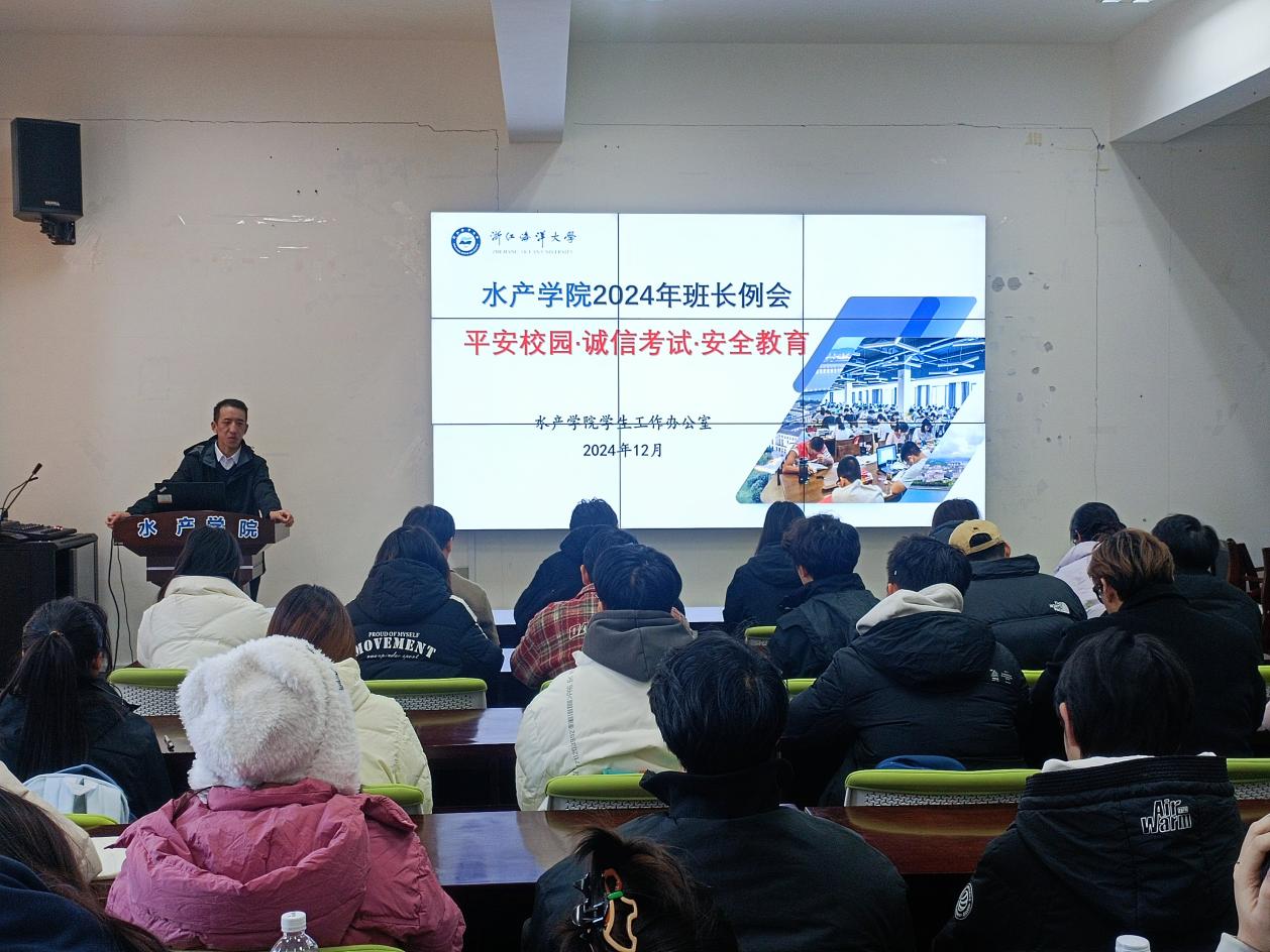 在海科楼254召开诚信与安全教育班长专题例会,会议由学院党委副书记、纪委书记付宗国主持,学工办主任郑宽宽、全体辅导员及班长全员出席。