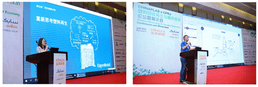 Exxonmobil在材料平行分论坛做分享    南方包装集团回收材料合作伙伴华菲曹总在分享回收技术